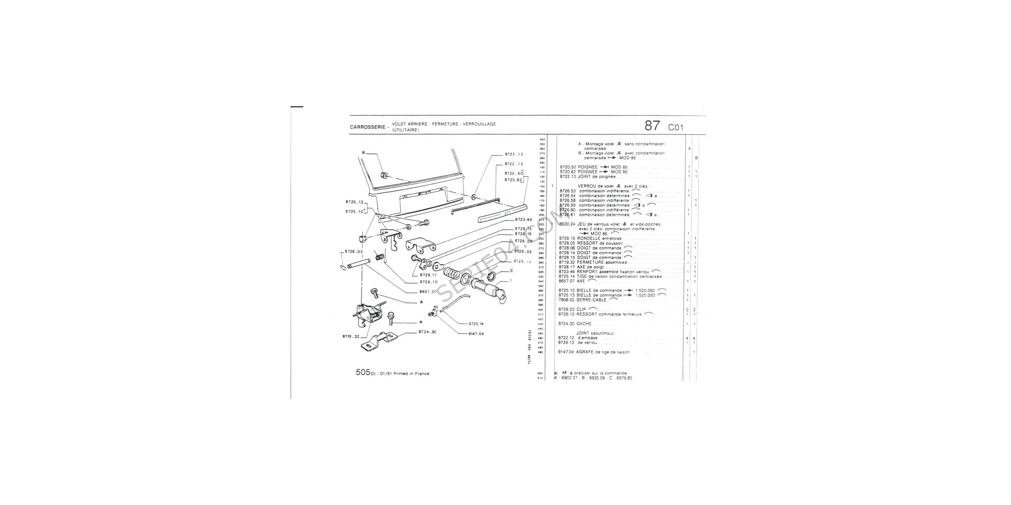 fermeture de coffre 104 Berline 1977 I-> à fin de série 305-505 Break...