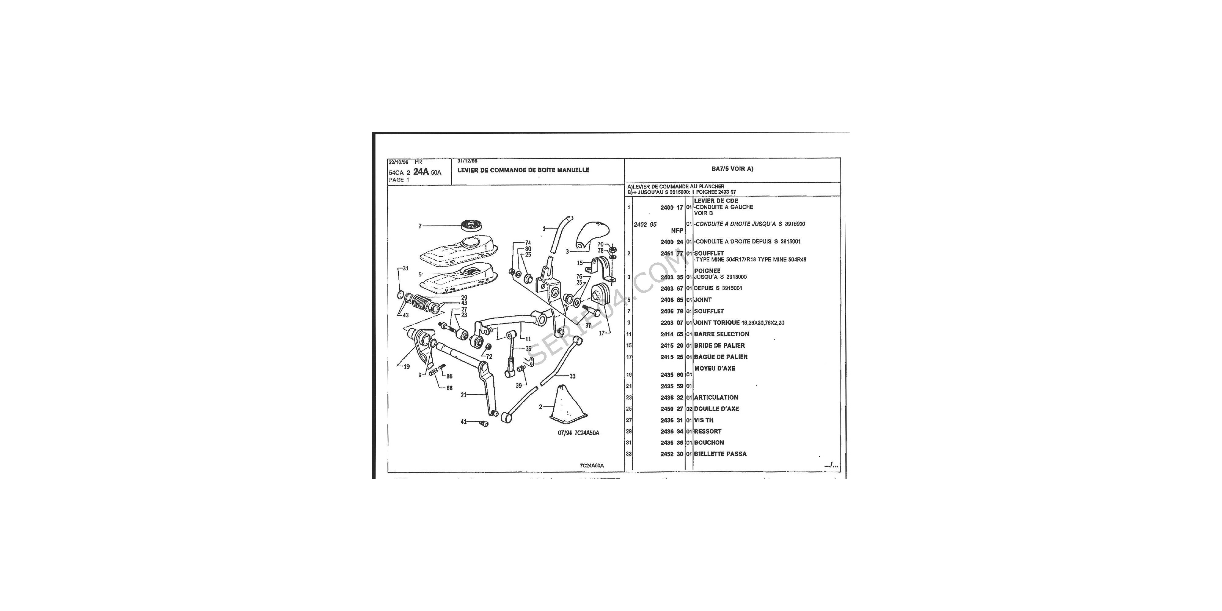 504 Pick-up commande au plancher