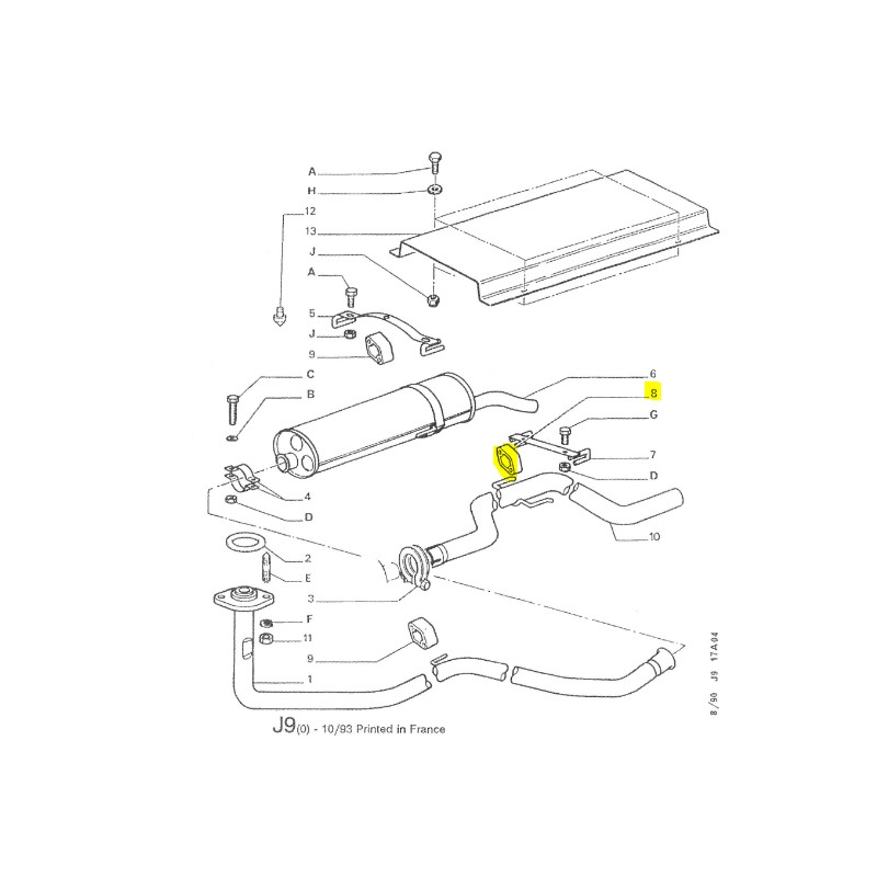 J9 sur tuyau de sortie et moteur essence et moteur diesel 1987 I-> à fin de série.