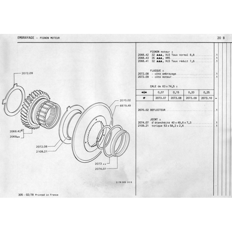 pignon moteur 35 dents 2 gorges moteur 1L6D XID-XIDL repère sur cannelure