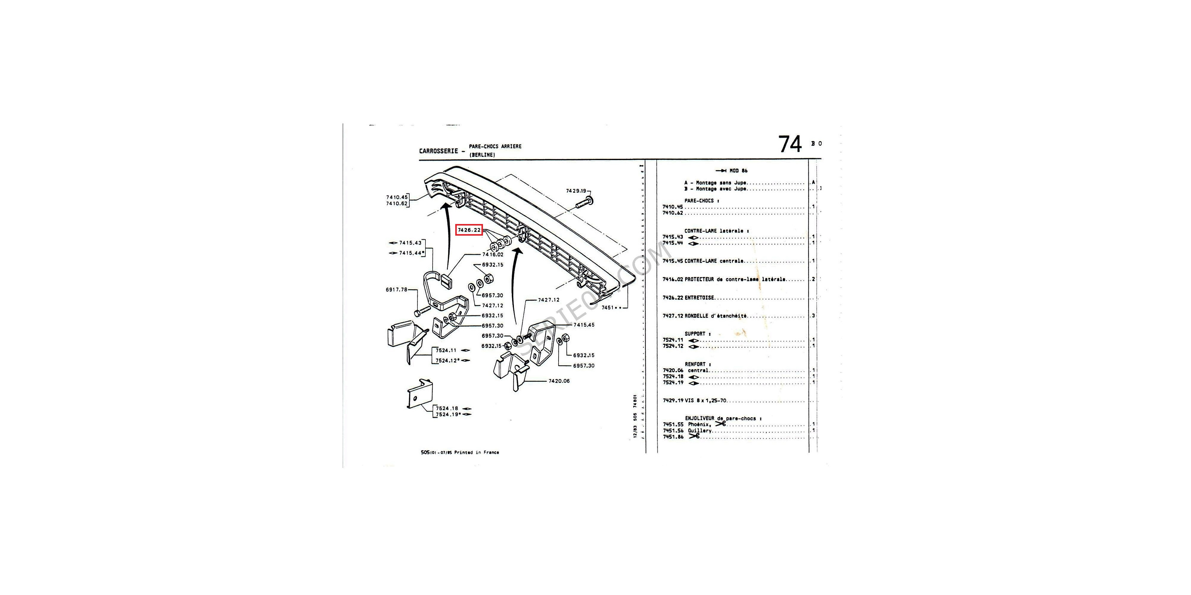 plaquette à vis de pare-chocs arrière 1986 I-> à fin de série