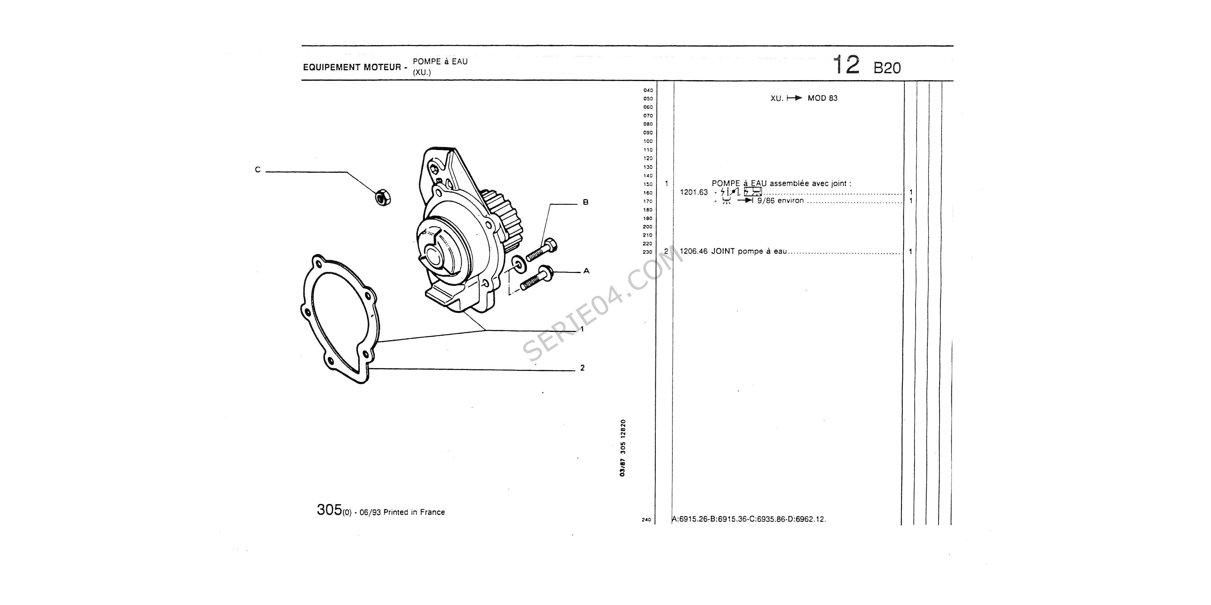 durite entre pompe à eau et raccord moteur XU 1L6i et 1L9i 1984 I->...