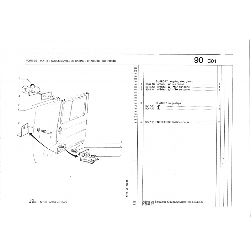 Supporto rullo anterioreLato destroSulla porta scorrevole anteriore